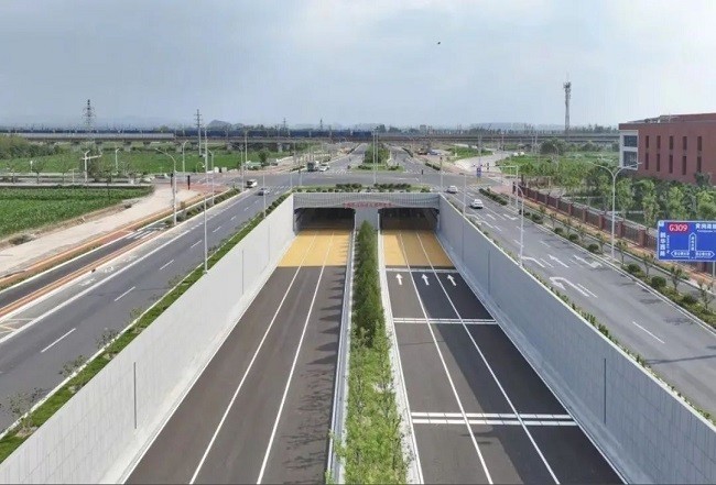 濟濼路穿黃北延隧道地面道路及附屬工程南起黃河隧道北岸敞開段,下穿鵲山水庫,接入國道G308,采用雙向六車道城市主干路標準,設(shè)計時速60公里/小時,總長度4.38公里。道路的順利通車為鵲華九里居等周邊區(qū)域提供了交通便利,為山東省實驗中學(xué)鵲華校區(qū)、總部經(jīng)濟區(qū)等項目保障交通通行及市政基礎(chǔ)設(shè)施配套服務(wù)。自此,從濟南主城區(qū)至起步區(qū)核心區(qū)域,車程由原來30分鐘以上縮短至15分鐘,大幅提升通勤效率。