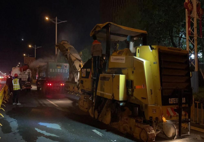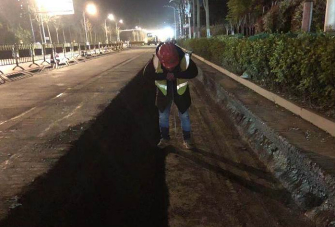 任務(wù)緊急、刻不容緩。項(xiàng)目部開工即沖鋒,倒排工期,快速組織,針對(duì)港西路現(xiàn)狀施工條件及交通狀況,反復(fù)優(yōu)化施工方案、合理安排施工工序,全力以赴投入施工,僅用四天就把主線溝槽全部打通。施工中堅(jiān)持標(biāo)準(zhǔn)、嚴(yán)守底線,為確保美觀,將瀝青接縫全部設(shè)置在標(biāo)線下;為避免施工工期加長,所有與地下管線沖突位置均根據(jù)給水安裝規(guī)范進(jìn)行管道順接,盡量不使用鋼制彎頭焊接。針對(duì)施工難點(diǎn),項(xiàng)目部積極協(xié)同監(jiān)理、安裝單位、建設(shè)單位召開討論會(huì),并嚴(yán)格按確定方案落實(shí),主動(dòng)協(xié)助供水管道安裝隊(duì)伍解決進(jìn)度慢的問題,共同提升施工進(jìn)展。