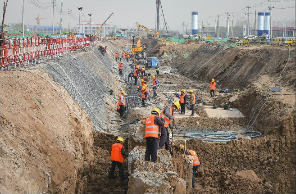 進入城建集團施工范圍的黃河大道施工現(xiàn)場,鉆機林立、機械轟鳴,處處展現(xiàn)如火如荼的建設(shè)場景。